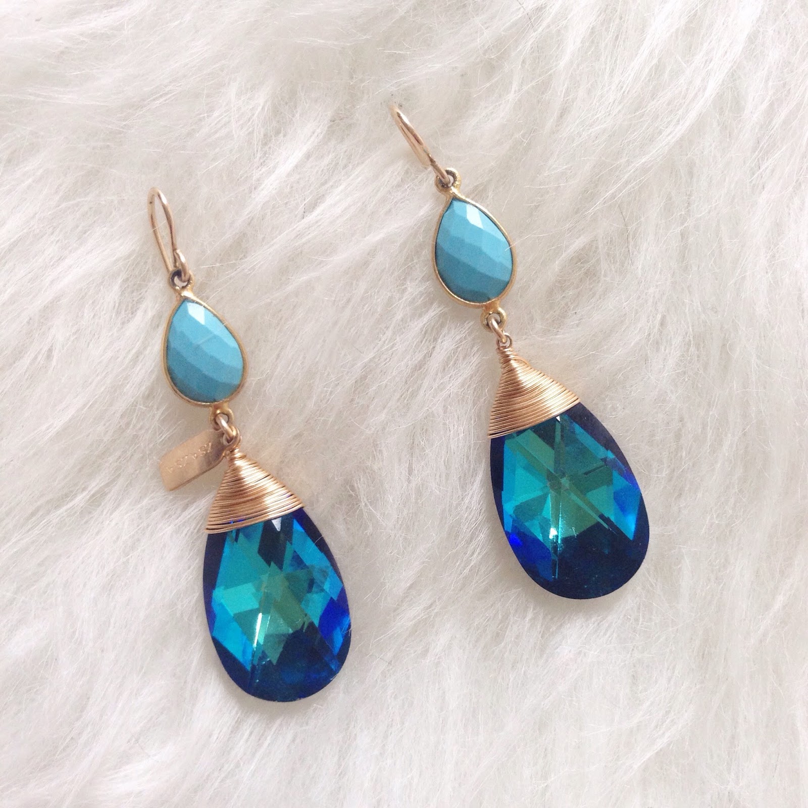 This is one of the pieces and it's an Aruba blue & turquoise earring, perfect for day events such as lunch or shopping. Keep an eye out for the other two pieces, you'll be seeing a lot of them!