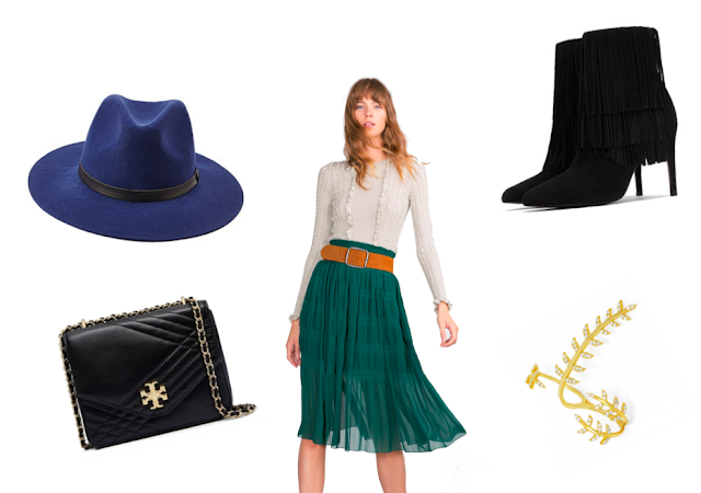 I'm currently loving the fringe trend and boho pieces {such as the look below} for the fall season. I also love a good belt as it always makes the outfit look more fitted {belt cinched at the waist that is}.