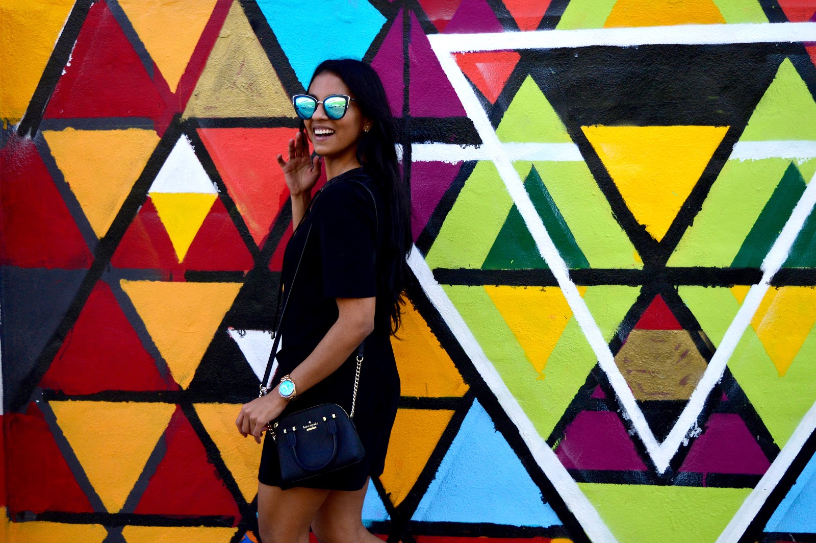 I thought these cool murals that I stumbled upon a random street in Aruba were the perfect backdrop for this dress to really stand out. Coincidentally, my shoes happened to match the murals as well.