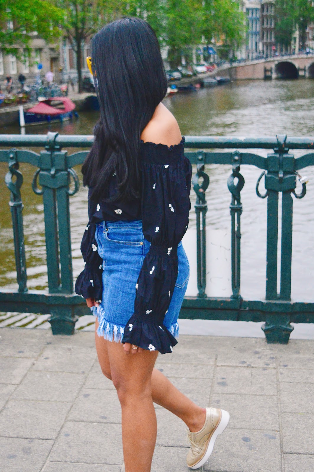 Since there was a breeze I opted for a long sleeve off shoulder top mixed with this denim skirt {which is a fave trend of mine at the moment}. I also wanted to be comfortable since I knew I was going to be walking so I opted for these oxford-style slip ons.