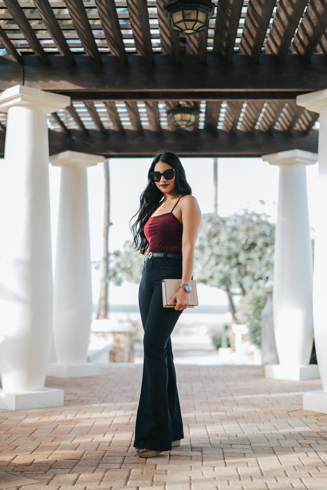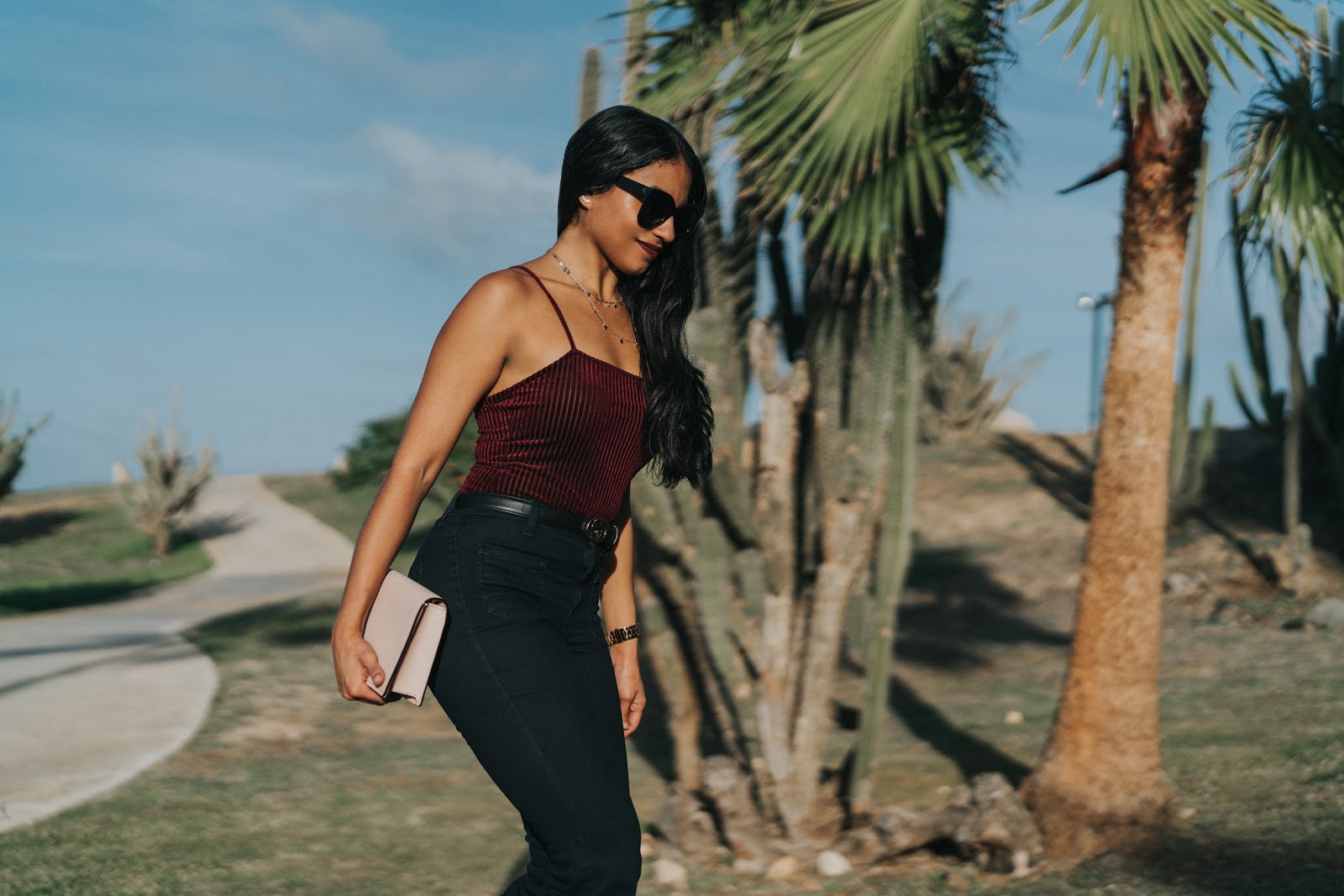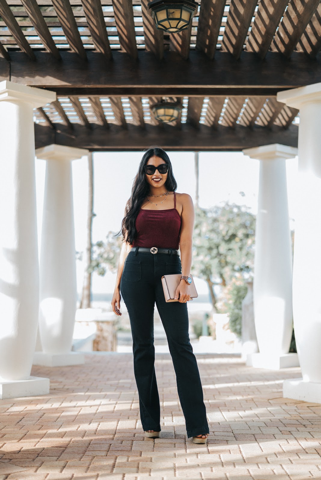 I love these jeans cause they are so versatile. I've worn this look with crop tops and off shoulder tops and it just creates a super sleek look overall.