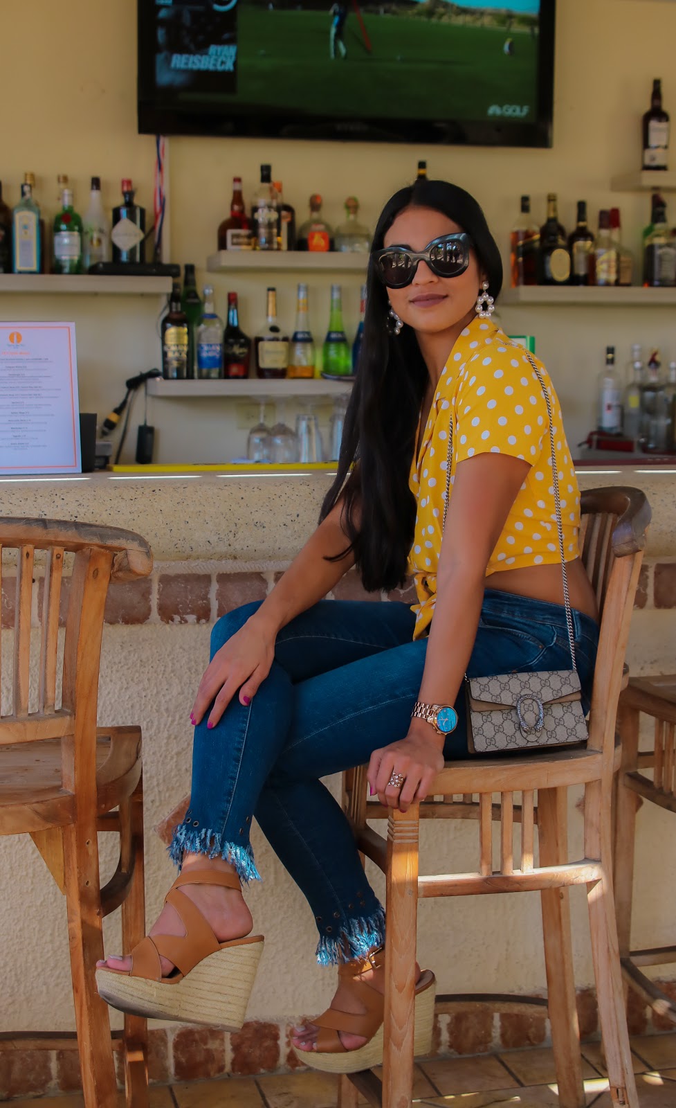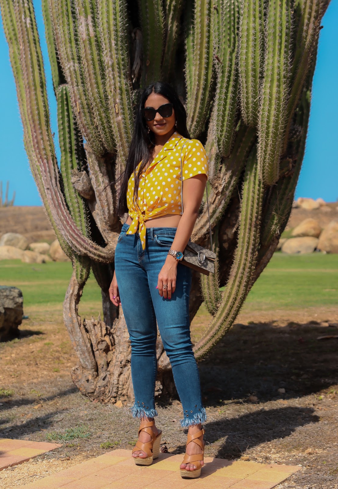 This outfit is super tropical because of the bright yellow hue. Now, I'm not someone that tends to lean on Yellow for my go-to color but there was something about this style and color that caught my attention right away.