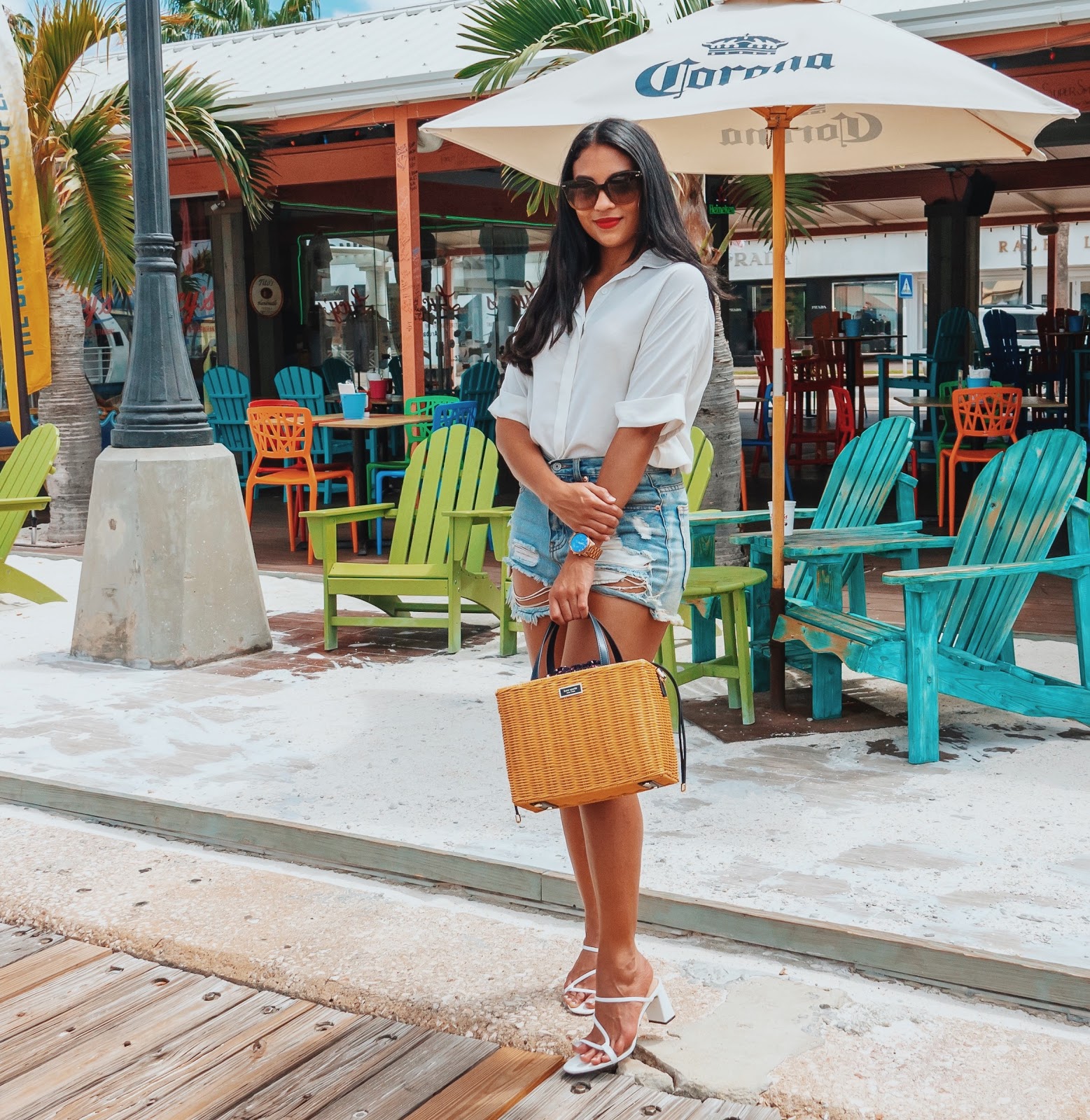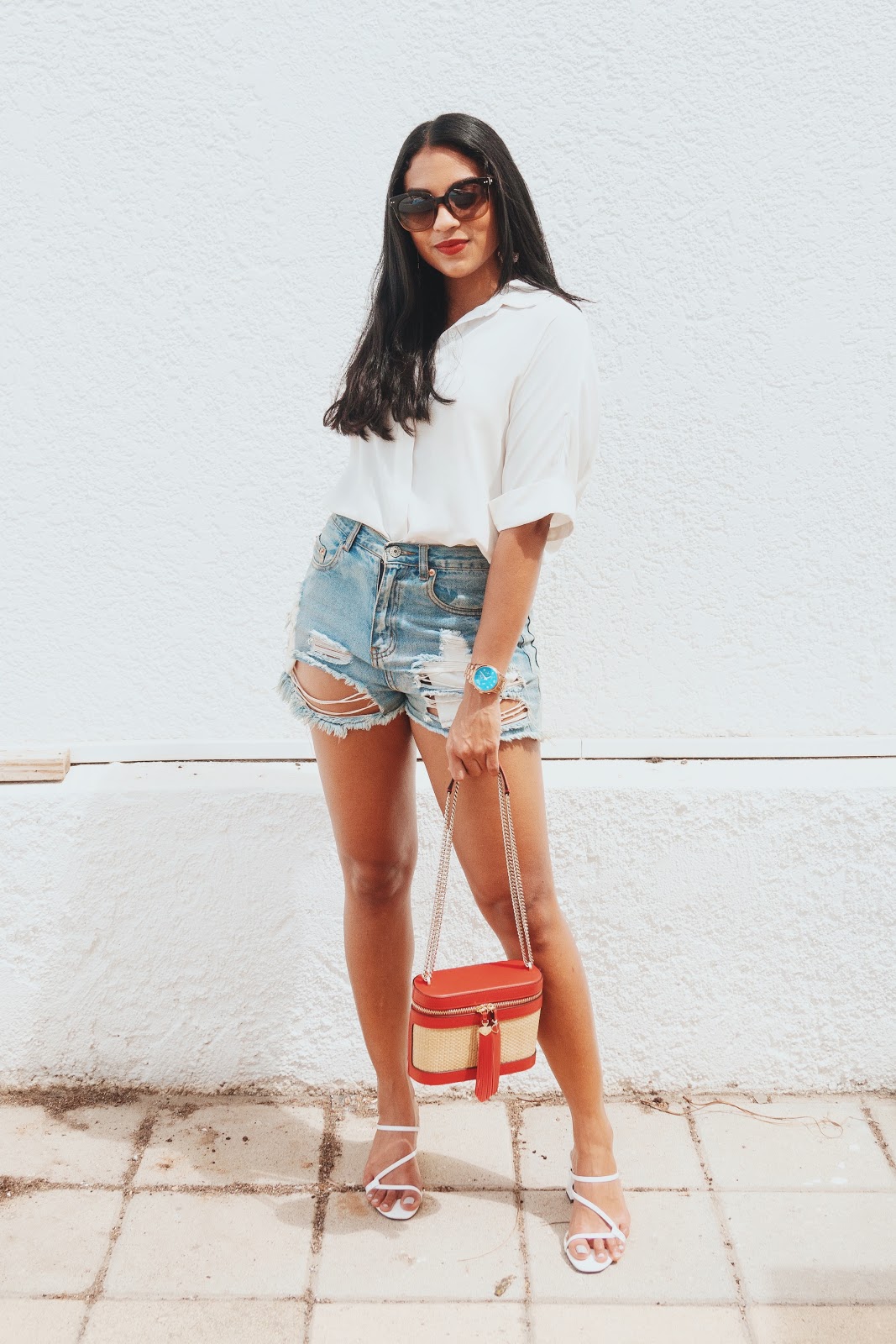 This look I put together is combining the classics. I recently purchased these white sandals and haven't stopped wearing them since. Not gonna lie, they are a teeny tiny but uncomfortable so I'm still in the "breaking-in" process. I did one look with two bags for versatility!